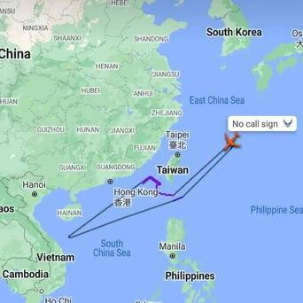 就在本周二,这架编号为64-14846的美国空军RC-135V电子侦察机,刚刚用几乎同样的路线,在广东沿海实施了一次侦察行动,没想到这才仅仅过了一天,他又来了!